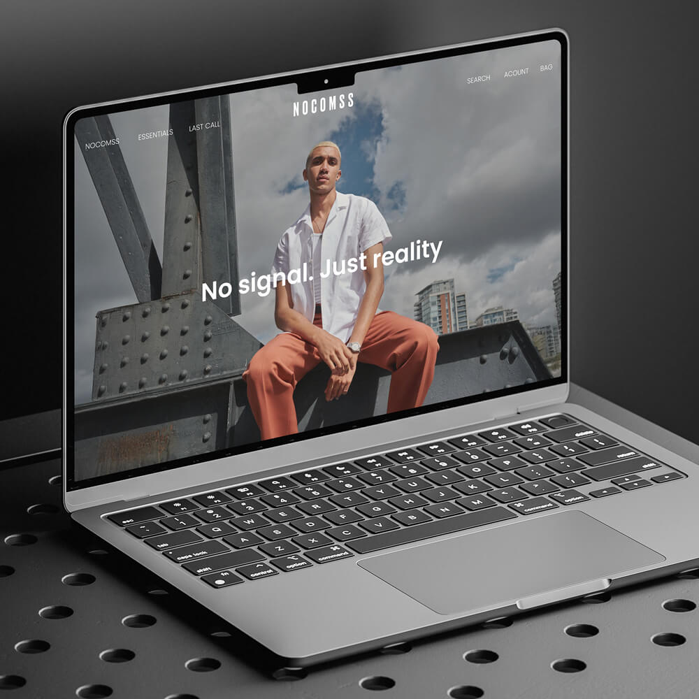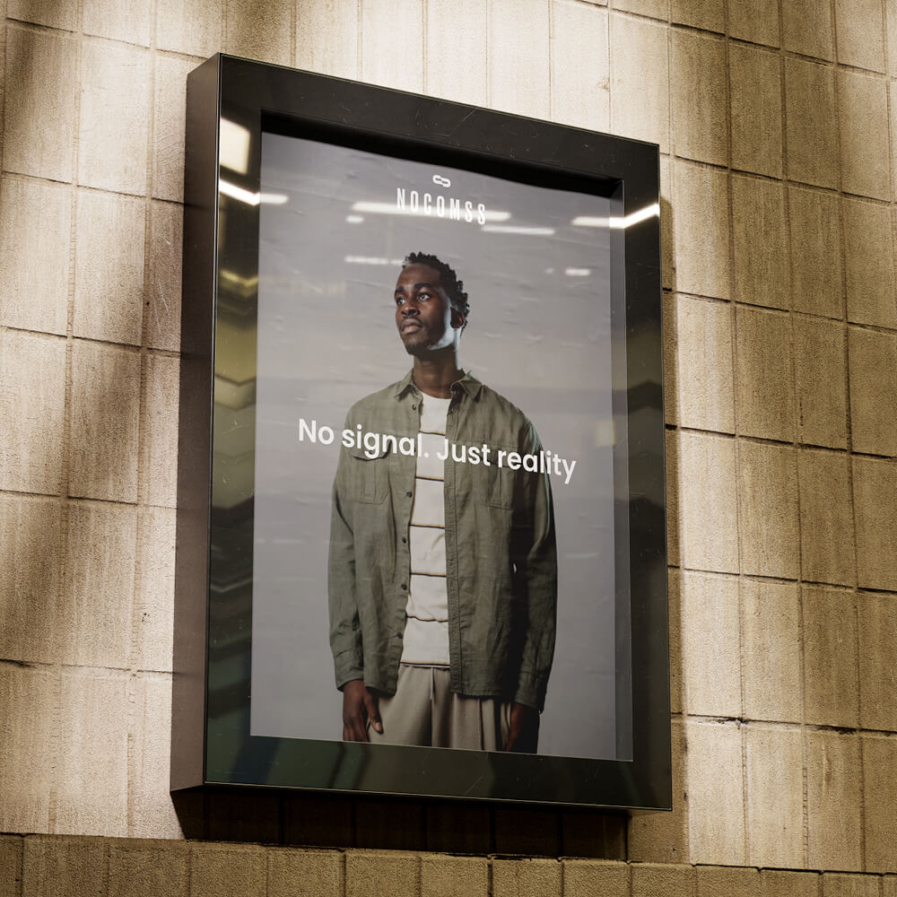 NOCOMSS nace como una marca de streetwear con una fuerte identidad conceptual basada en la desconexión digital, la sostenibilidad y una estética minimalista con toques tecnológicos. El reto era crear una marca con un mensaje claro y una identidad visual potente que se diferenciara dentro del sector.